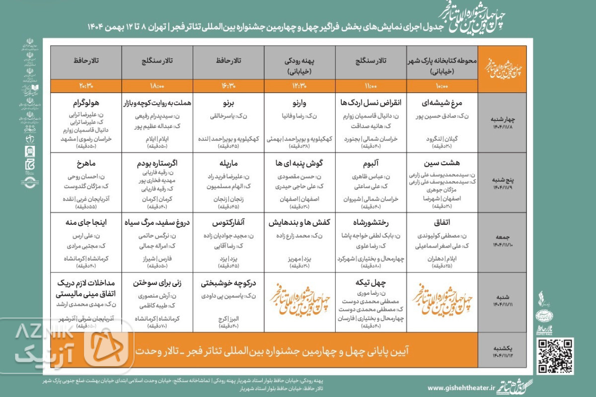 آزنیک گزارش می‌دهد جدول اجراهای بخش «فراگیر» چهل‌وچهارمین جشنواره تئاتر فجر منتشر شد